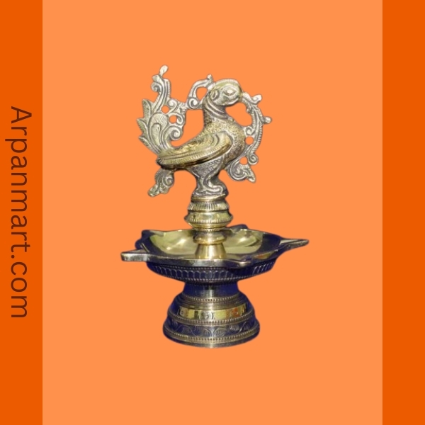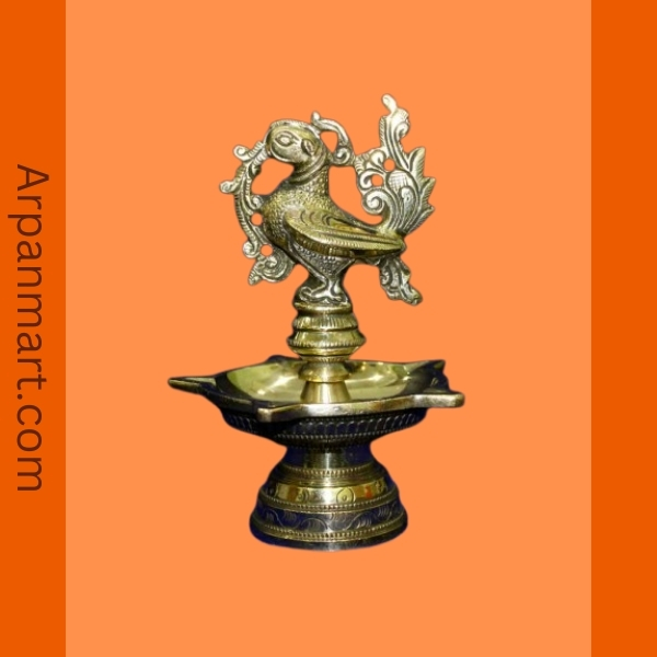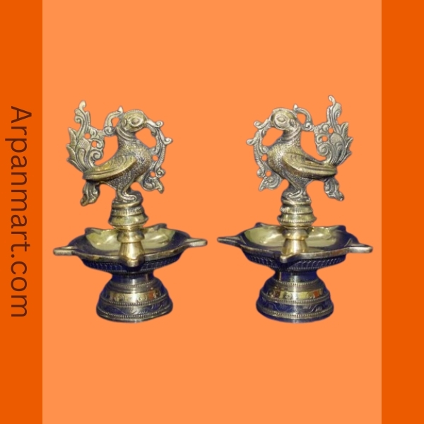 Antique Brass Peacock Diya 5 Face (Pair)