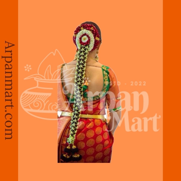 Arpan Mart Presents fresh flower jeda for an Indian wedding is a mesmerizing adornment that transforms the bride’s hair into a cascading masterpiece of beauty and elegance.