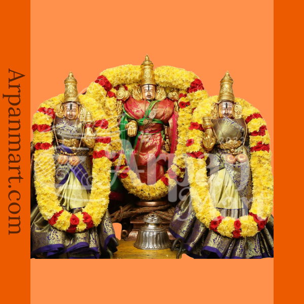 “Srinivasa Kalyana garlands are exquisite floral arrangements crafted for the divine wedding of Lord Venkateswara and Goddess Padmavathi. These garlands, woven with vibrant flowers like jasmine, roses, and marigolds, symbolize purity, love, and the sacred bond of marriage.
